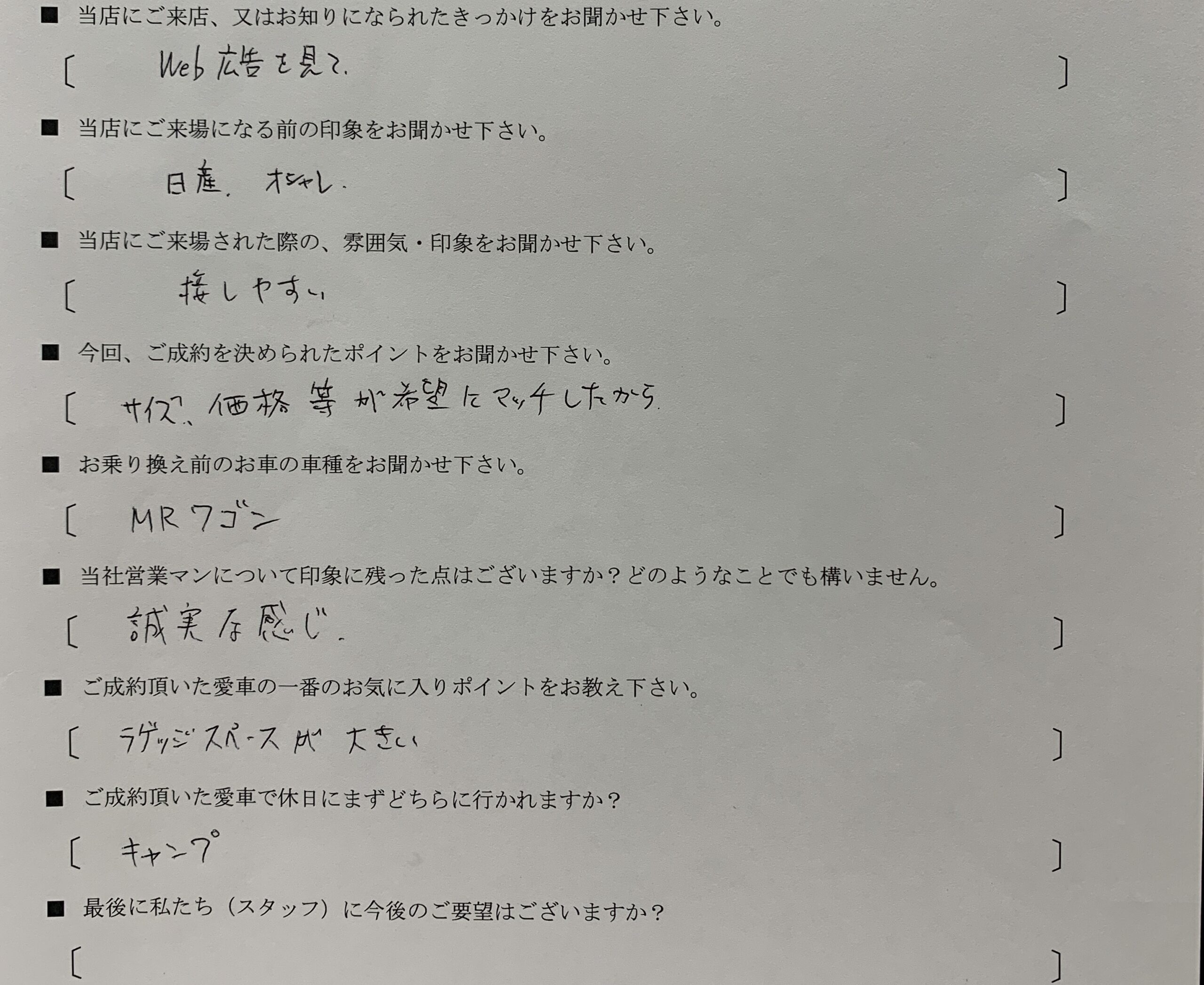 2025/10/19 ルノー所沢 H様、キャプチャーのご納車おめでとうございます! こんにちは!ルノー所沢です! キャプチャーをご納車させて頂きました、H様のご購入後のアンケートをご紹介させて頂きます。 H様、キャプチャーのご納車おめでとうございます! また、アンケートにご協力頂き誠にありがとうございます。 キャプチャーでキャンプを楽しまれて下さいね☆ 何か分からない事などございましたら、いつでもご連絡くださいませ。 今後とも宜しくお願い申し上げます。 この記事をシェアする