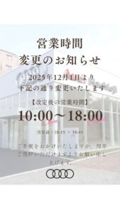誠に勝手ながら2025年12月1日より、営業時間を下記の通り変更させていただきます。