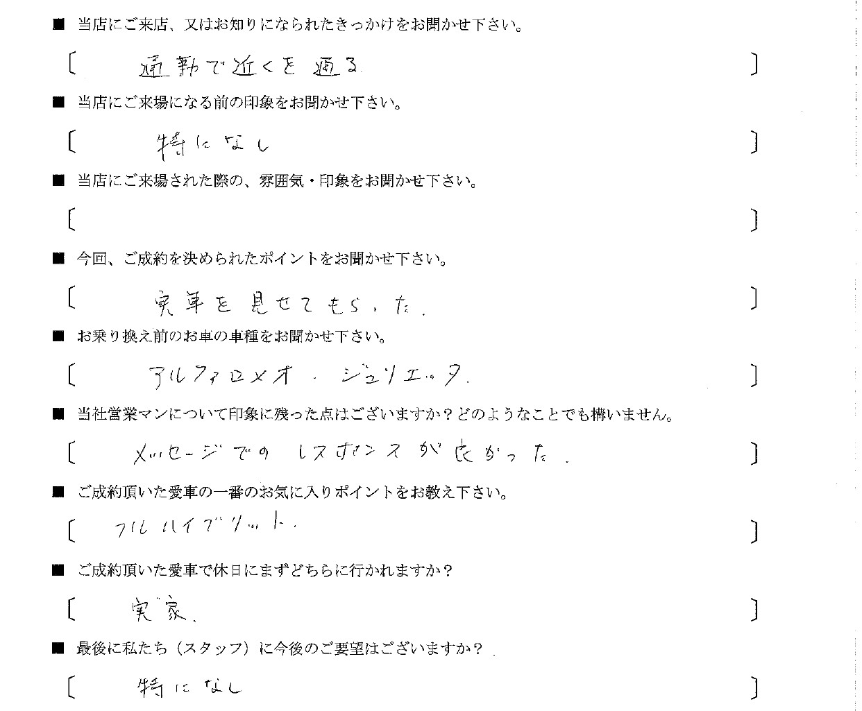 2025/11/22 ルノー所沢 S様、ルーテシアのご納車おめでとうございます! こんにちは!ルノー所沢です! ルーテシアをご納車させて頂きました、S様のご購入後のアンケートをご紹介させて頂きます。 S様、ルーテシアのご納車おめでとうございます! また、アンケートにご協力頂き誠にありがとうございます。 ルーテシアで沢山の想い出を作られて下さいね☆ 何か分からない事や不安な事などございましたら、お気軽にご連絡くださいませ。 今後とも宜しくお願い申し上げます。 この記事をシェアする